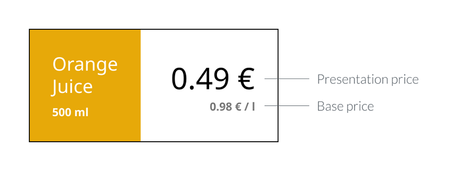 | Base price         | <p>Price per base measurement unit (such as a kilogram or liter).<br>It is often used by customers to compare the prices of different products.</p> |