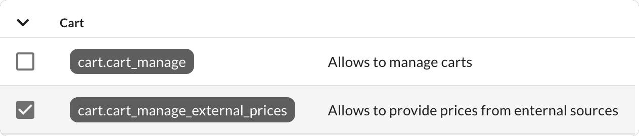 1. Get the `cart.cart_manage_external_prices` scope to handle external system communication.