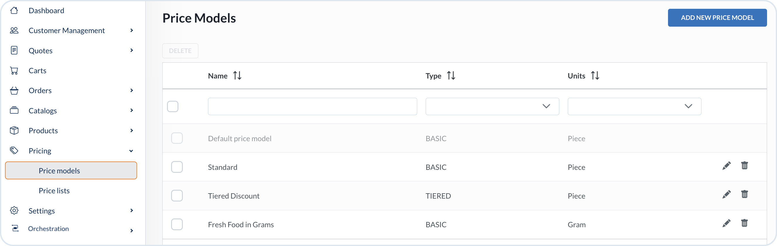 Price models allow you to create a basic pricing strategy. With the price models, you can create multiple pricing arrangements and use them across all of your offerings. You can arrange the prices for basic products, tiers or different volumes.